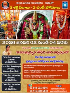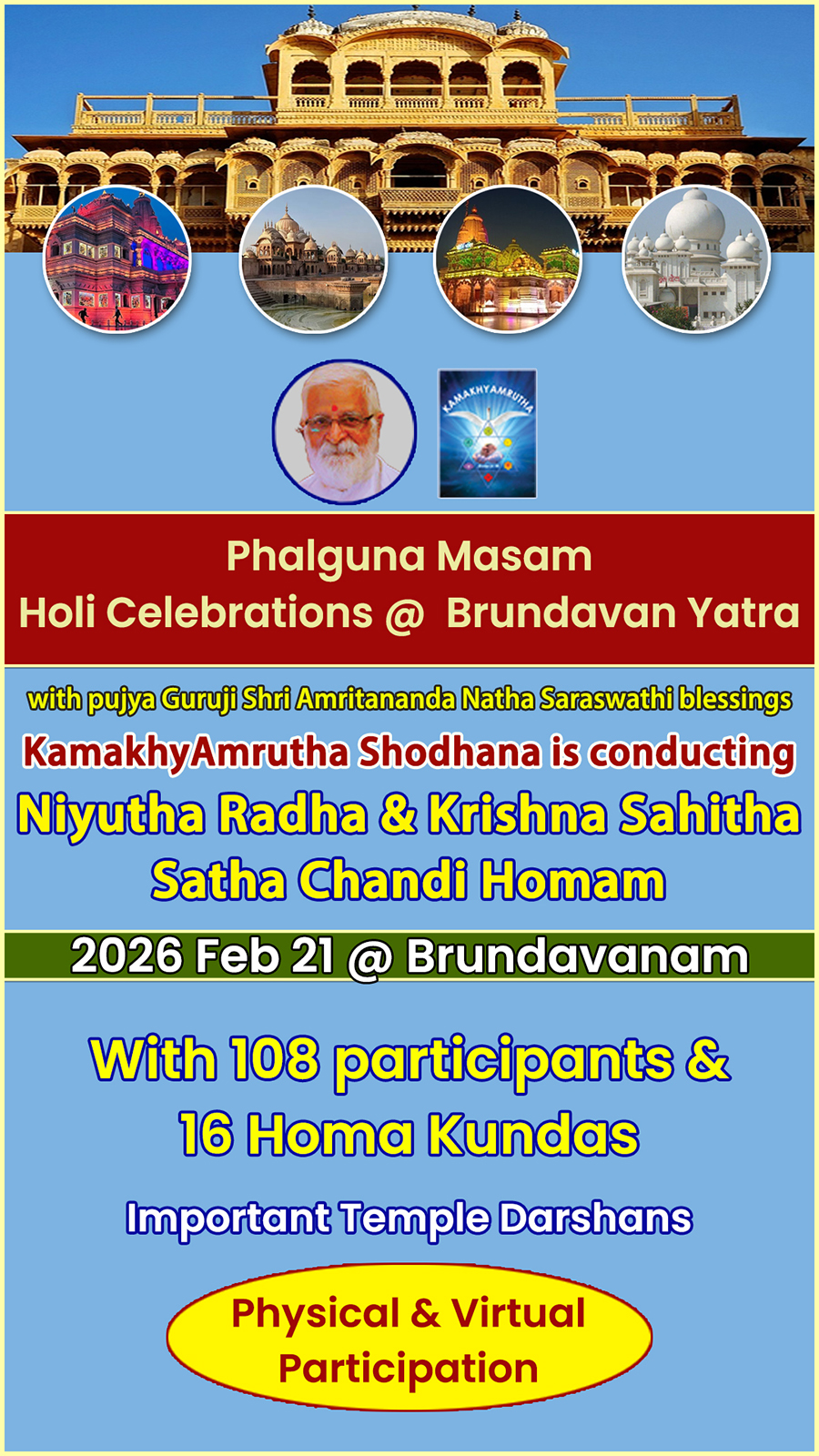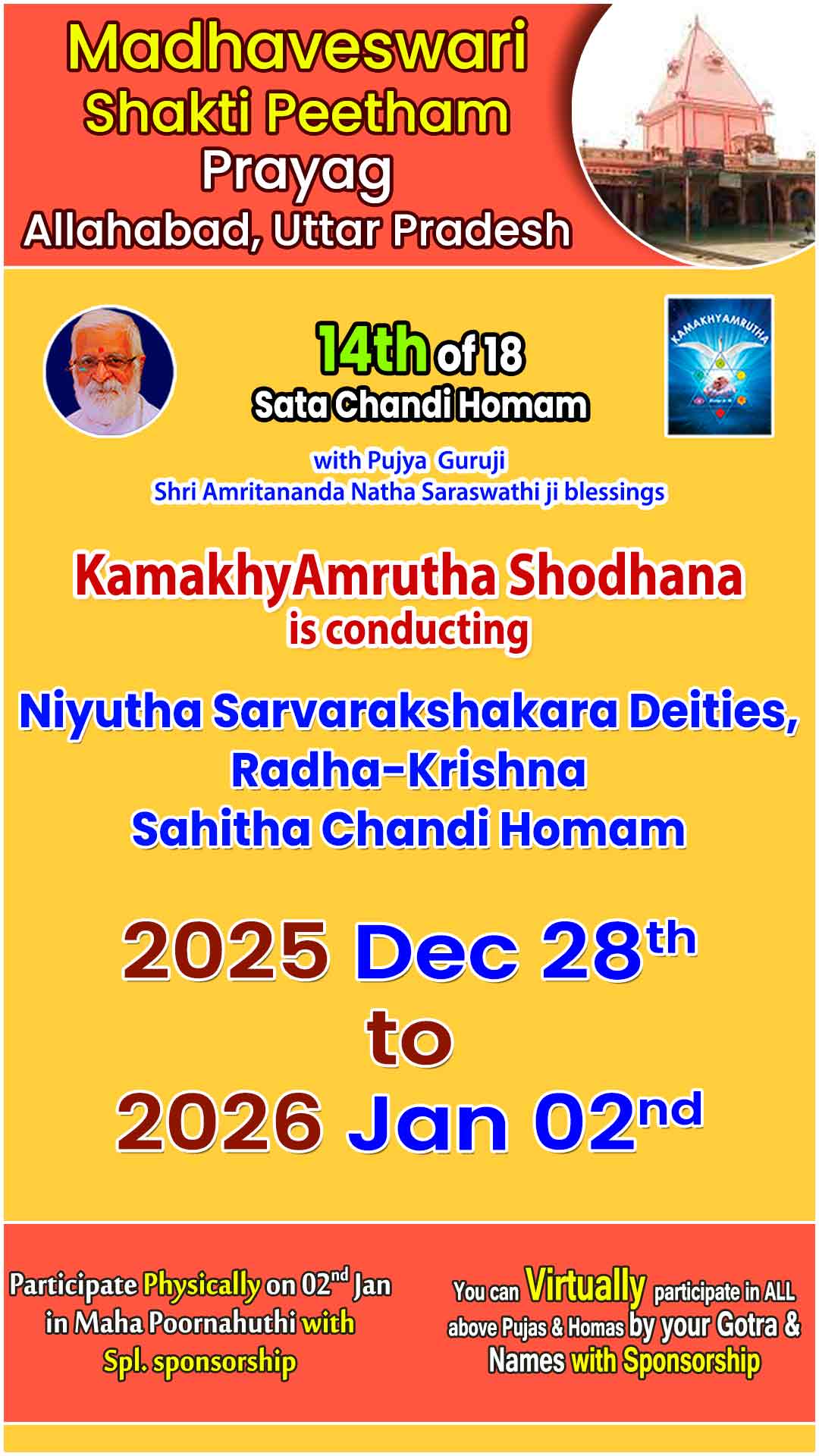 KamakhyAmrutha Shodhana is conducting Niyutha Sarvarakshakara Deities, Radha-Krishna sahitha Shata Chandi Homam from 2025 Dec 28th to 2026 Jan 02nd